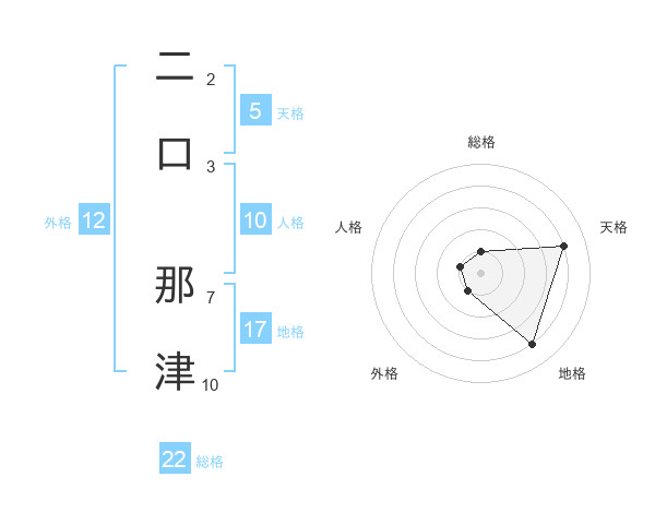 二口 那津さんを姓名の画数から五運を鑑定