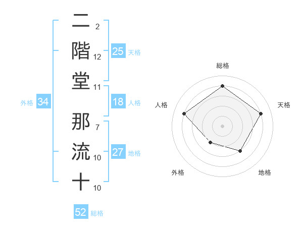 二階堂 那流十さんの総格は52画の4点!