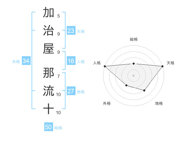 加治屋 那流十さんを姓名の画数から五運を鑑定