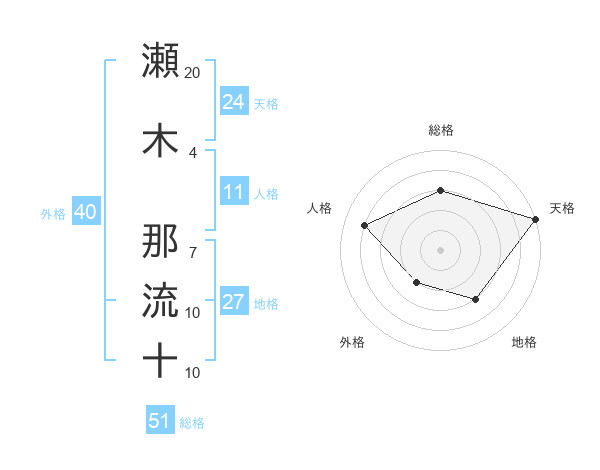 瀬木 那流十さんを姓名の画数から五運を鑑定
