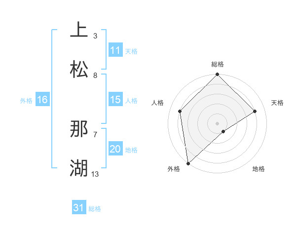 上松 那湖さんの総格は31画の5点!