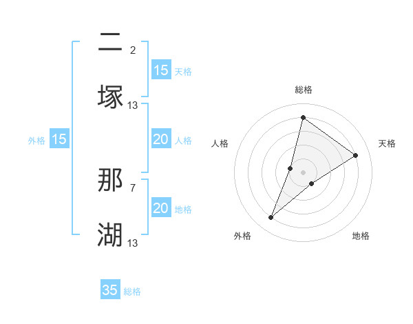 二塚 那湖さんを姓名の画数から五運を鑑定