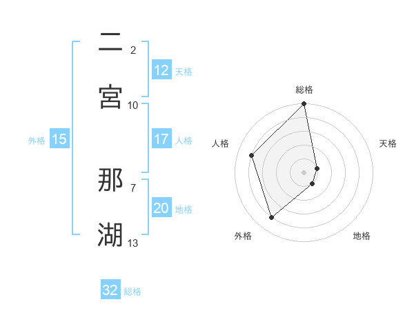 二宮 那湖さんの総格は32画の5点!