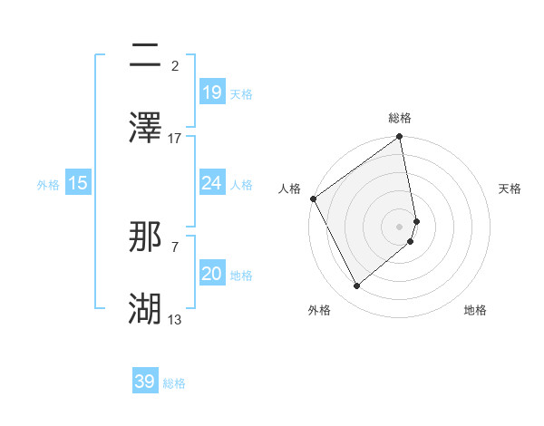 二澤 那湖さんを姓名の画数から五運を鑑定