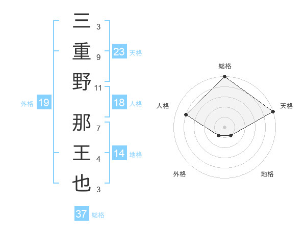 三重野 那王也さんを姓名の画数から五運を鑑定