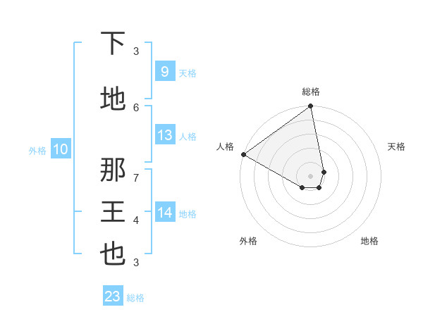 下地 那王也さんの総格は23画の5点!