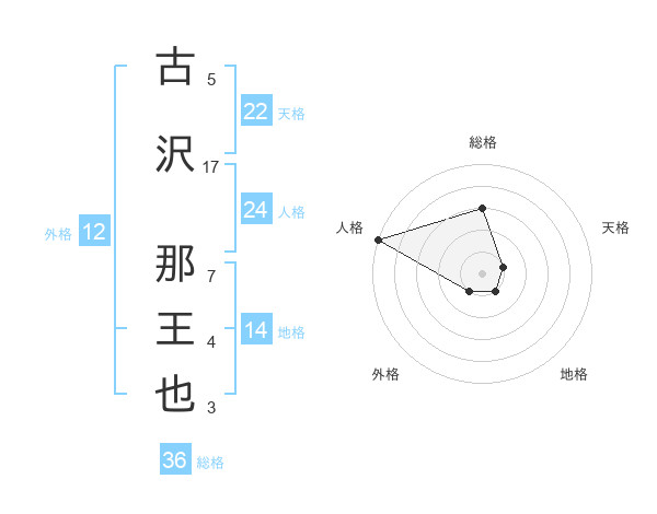 古沢 那王也さんを姓名の画数から五運を鑑定