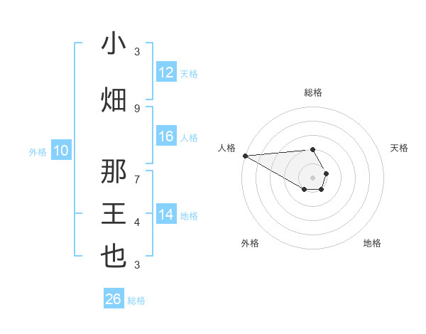 小畑 那王也さんを姓名の画数から五運を鑑定