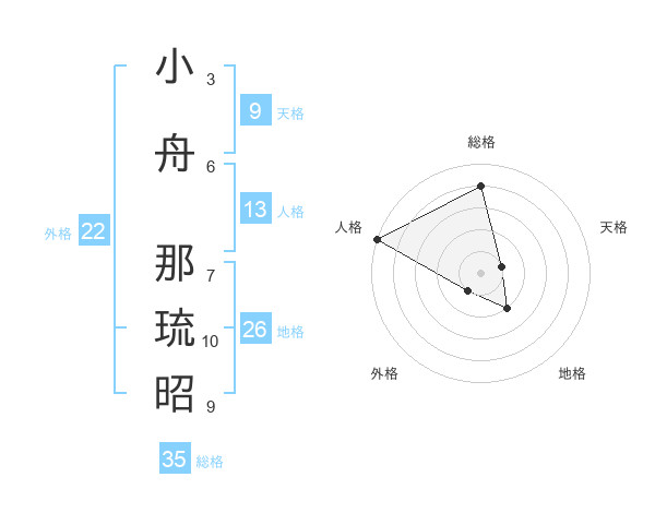 小舟 那琉昭さんを姓名の画数から五運を鑑定