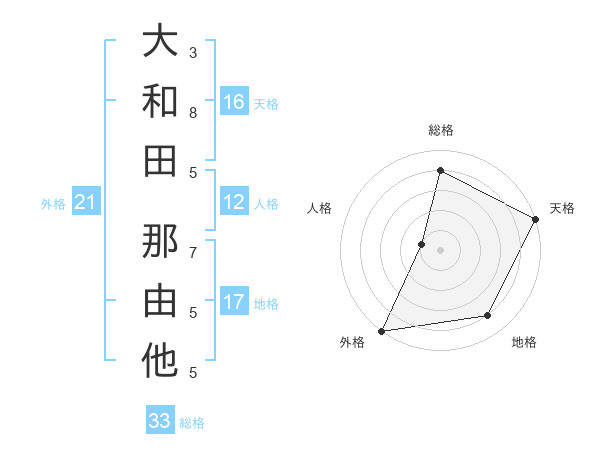 大和田 那由他さんを姓名の画数から五運を鑑定