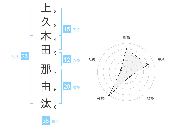上久木田 那由汰さんの総格は35画の4点!