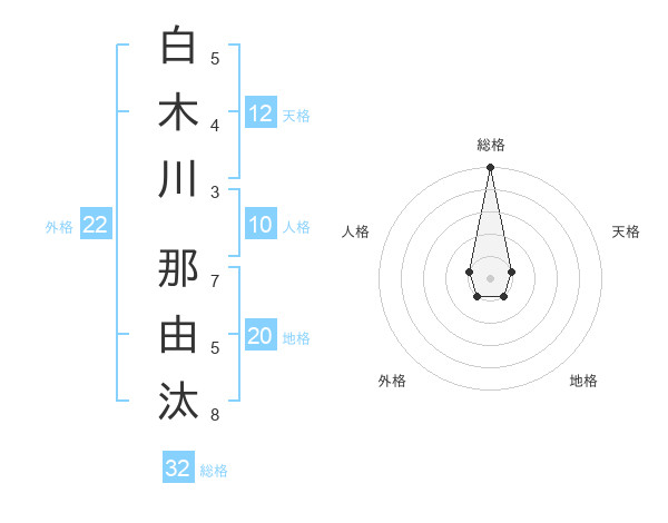 白木川 那由汰さんの総格は32画の5点!
