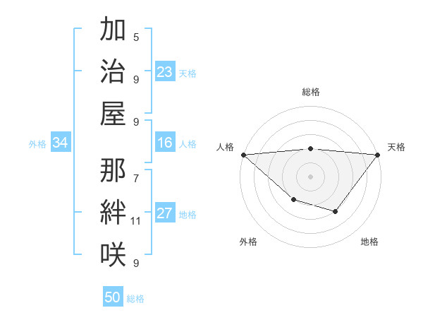 加治屋 那絆咲さんを姓名の画数から五運を鑑定