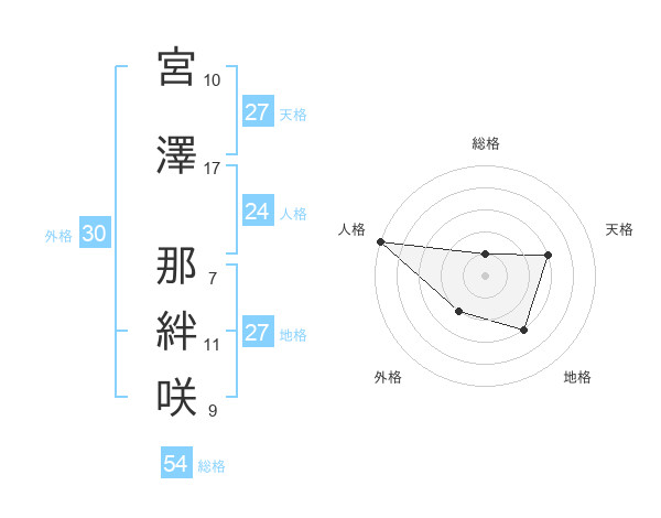 宮澤 那絆咲さんを姓名の画数から五運を鑑定