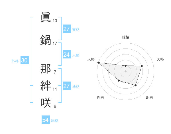 眞鍋 那絆咲さんを姓名の画数から五運を鑑定