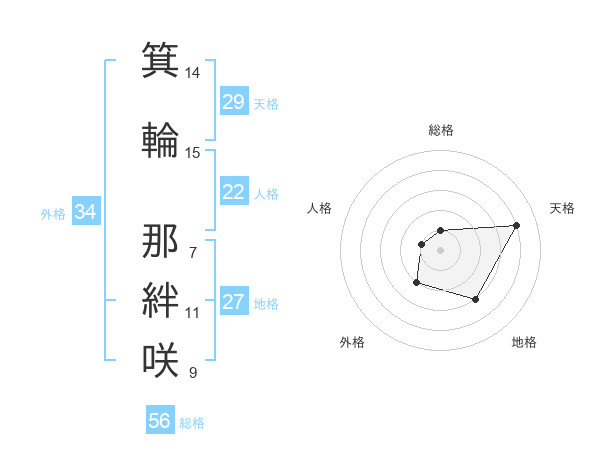 箕輪 那絆咲さんを姓名の画数から五運を鑑定