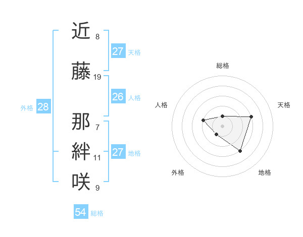 近藤 那絆咲さんを姓名の画数から五運を鑑定