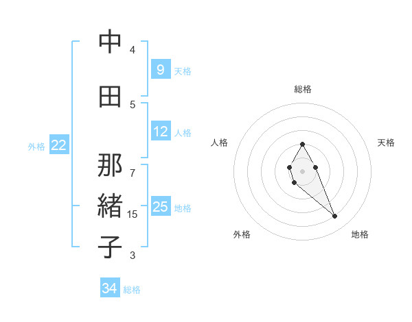 中田 那緒子さんを姓名の画数から五運を鑑定