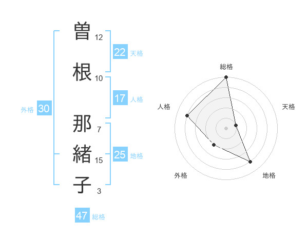 曽根 那緒子さんを姓名の画数から五運を鑑定