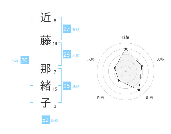 近藤 那緒子さんを姓名の画数から五運を鑑定