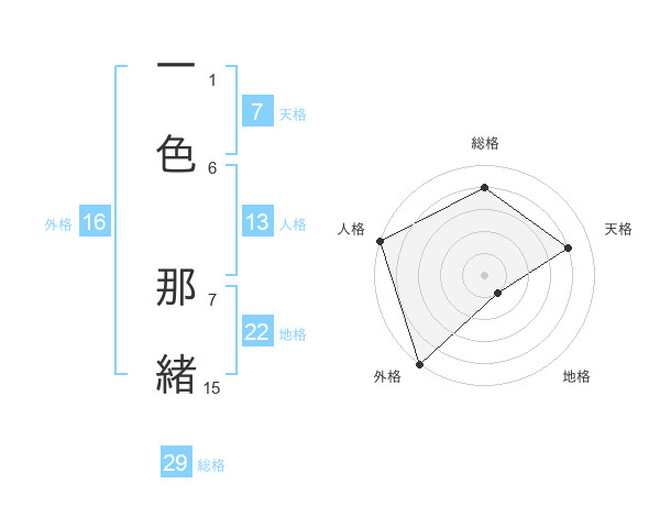 一色 那緒さんの外格は16画の5点!