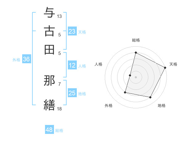 与古田 那繕さんの天格は23画の5点