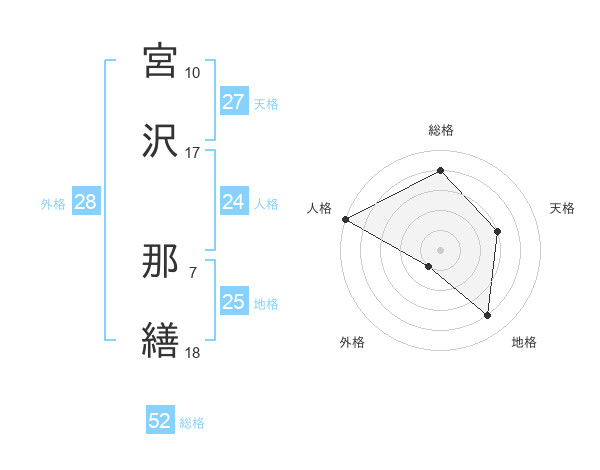 宮沢 那繕さんを姓名の画数から五運を鑑定