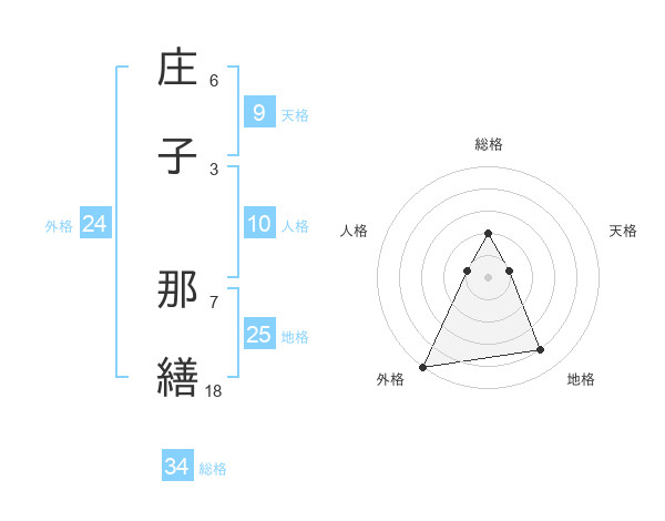 庄子 那繕さんを姓名の画数から五運を鑑定