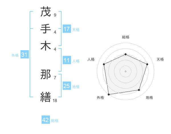 茂手木 那繕さんを姓名の画数から五運を鑑定