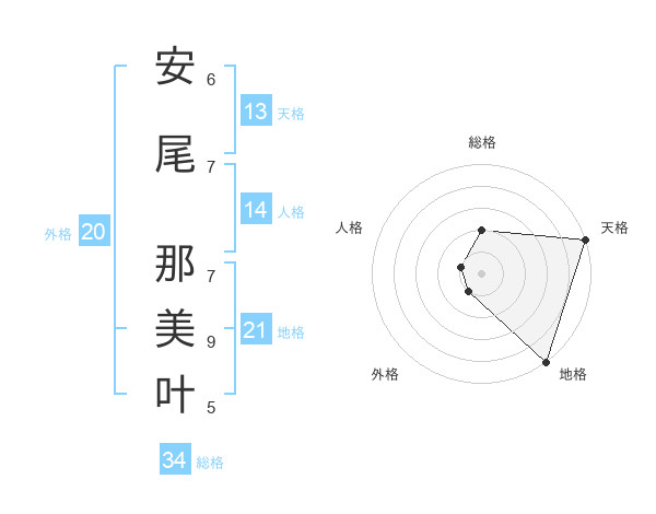 安尾 那美叶さんを姓名の画数から五運を鑑定