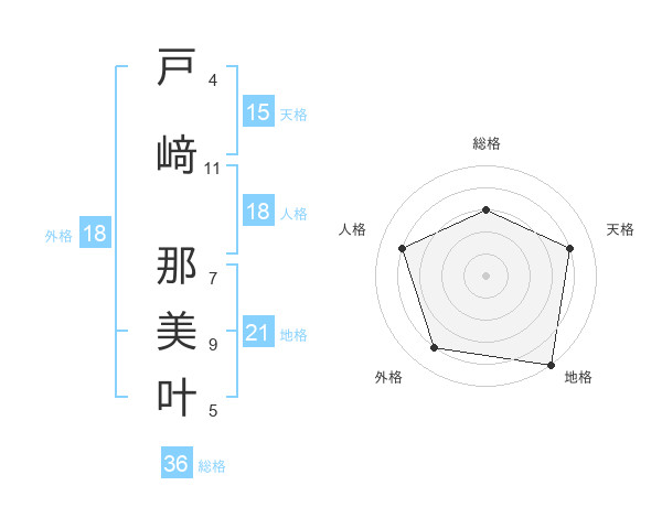 戸﨑 那美叶さんの地格は21画の5点!