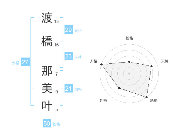 渡橋 那美叶さんを姓名の画数から五運を鑑定