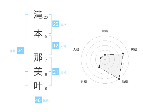 滝本 那美叶さんを姓名の画数から五運を鑑定