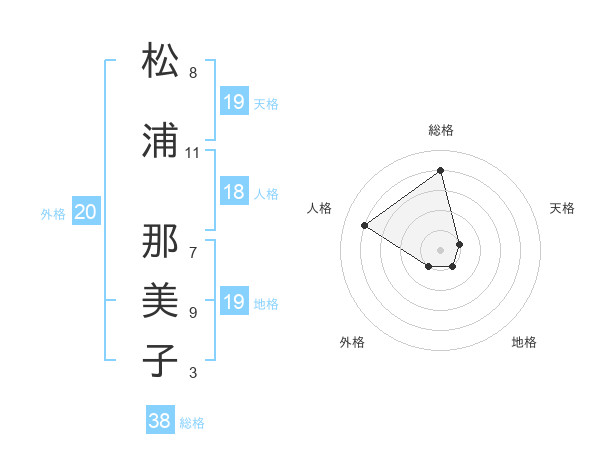 松浦 那美子さんを姓名の画数から五運を鑑定