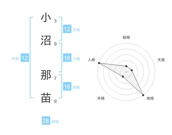 小沼 那苗さんを姓名の画数から五運を鑑定