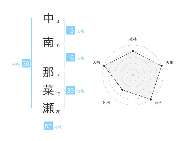 中南 那菜瀬さんを姓名の画数から五運を鑑定