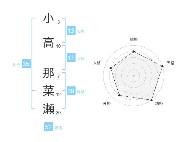 小高 那菜瀬さんを姓名の画数から五運を鑑定