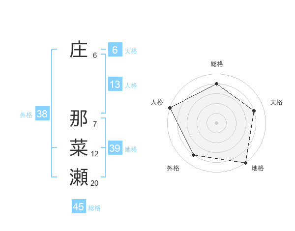 庄 那菜瀬さんを姓名の画数から五運を鑑定