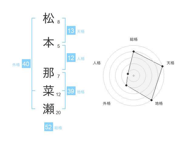 松本 那菜瀬さんの総格は52画の4点!
