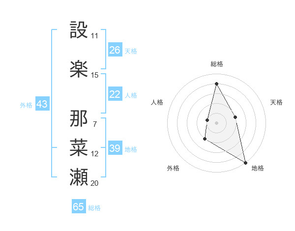設楽 那菜瀬さんの総格は65画の4点!