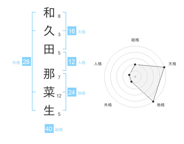 和久田 那菜生さんを姓名の画数から五運を鑑定