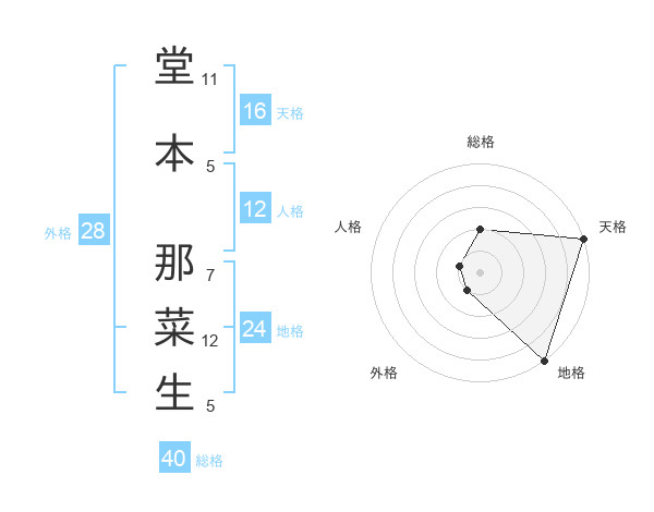堂本 那菜生さんを姓名の画数から五運を鑑定