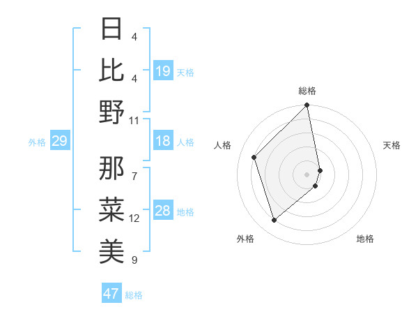日比野 那菜美さんの総格は47画の5点!
