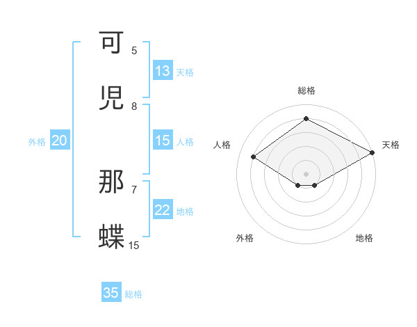 可児 那蝶さんを姓名の画数から五運を鑑定