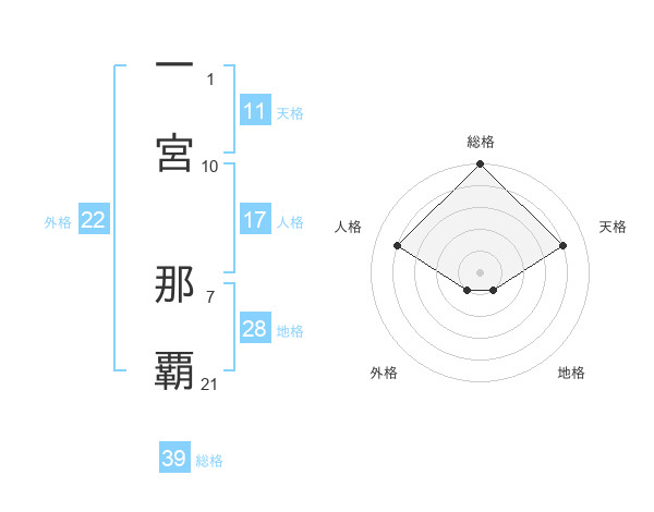 一宮 那覇さんを姓名の画数から五運を鑑定