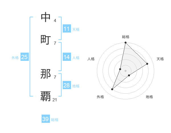 中町 那覇さんの外格は25画の4点!