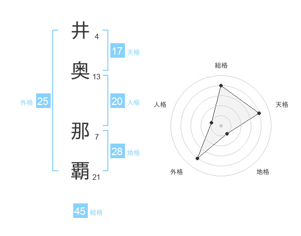 井奥 那覇さんを姓名の画数から五運を鑑定