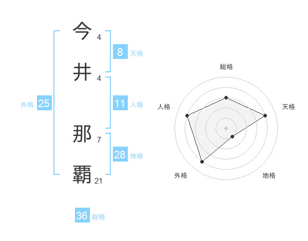 今井 那覇さんの天格は8画の4点