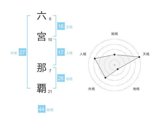 六宮 那覇さんの天格は16画の5点!