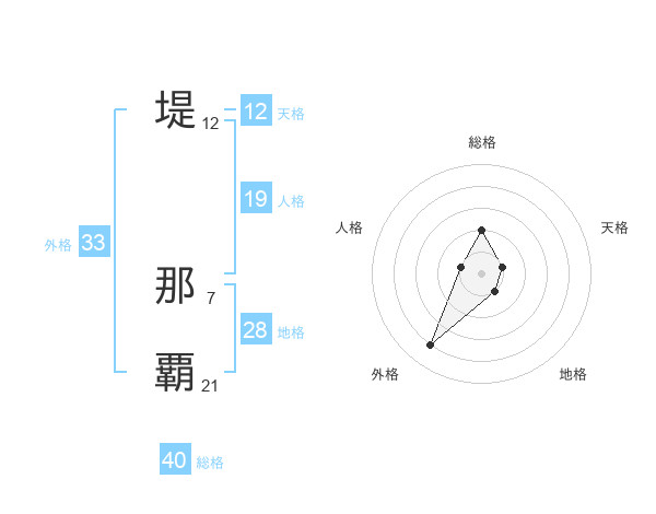 堤 那覇さんの外格は33画の4点!